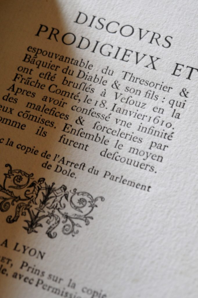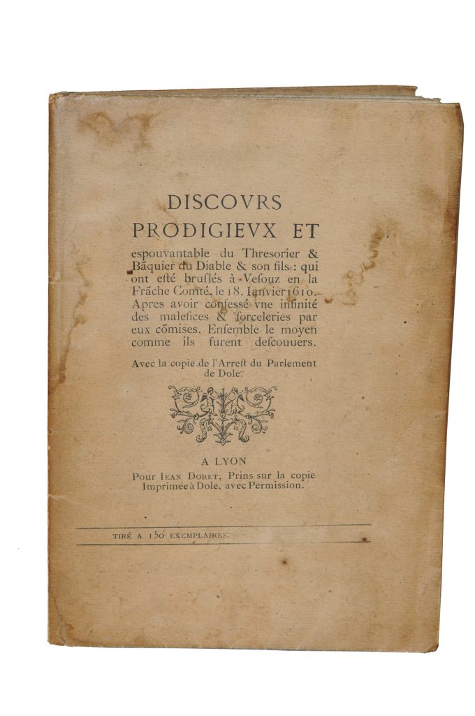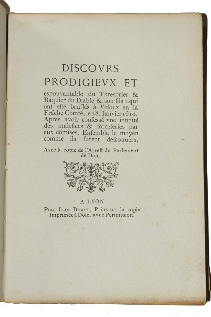 Discours prodigieux et espouvantable du Thresorier & Baquier du Diable & son fils: qui ont été brulés à Vesouz en la Franche Comté le 19 janvier 1610, Lyon , Jean Doret [Paris, Willem, 1871]