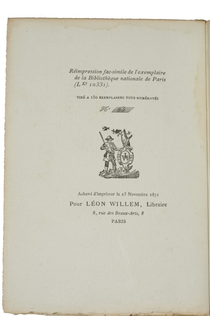 Belle réimpression en fac similé donnée par Willem de l’exemplaire conservée à la BNF.